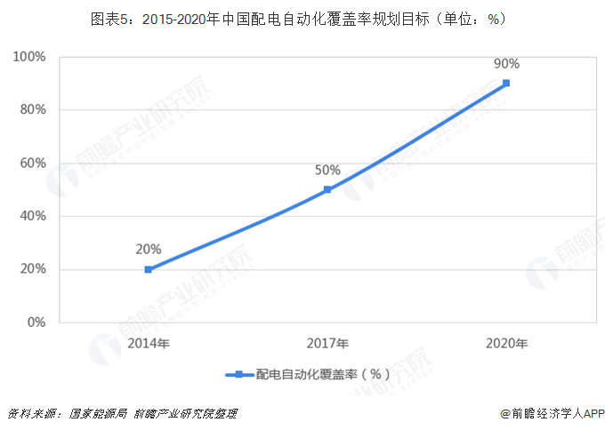 此外,根據(jù)我國頒布的《配電網(wǎng)建設(shè)改造行動計劃(2015-2020年)》,文件明確配電網(wǎng)的自動化對于提高供電可靠性至關(guān)重要,是未來電力自動化發(fā)展的關(guān)鍵之一。同時,《規(guī)劃》明確提出2020年中國配電自動化覆蓋率要達(dá)到90%;同時,根據(jù)“十三五”規(guī)劃,也提到要在2020年全面實現(xiàn)配電自動化覆蓋90%的目標(biāo),其中東部地區(qū)?。▍^(qū)、市)公司配電自動化覆蓋率不低于95%,中西部地區(qū)?。▍^(qū)、市)公司配電自動化覆蓋率不低于90%。但是,截至目前,已建成的配電自動化項目覆蓋率與2020年目標(biāo)相差甚遠(yuǎn),未來還有極大地提高空間,將是電力自動化的發(fā)展重點(diǎn)。