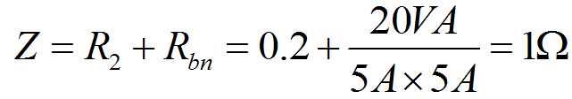 (2)計(jì)算CT銘牌容量的額定負(fù)荷值,額定負(fù)荷=額定容量/(額定電流*額定電流)。