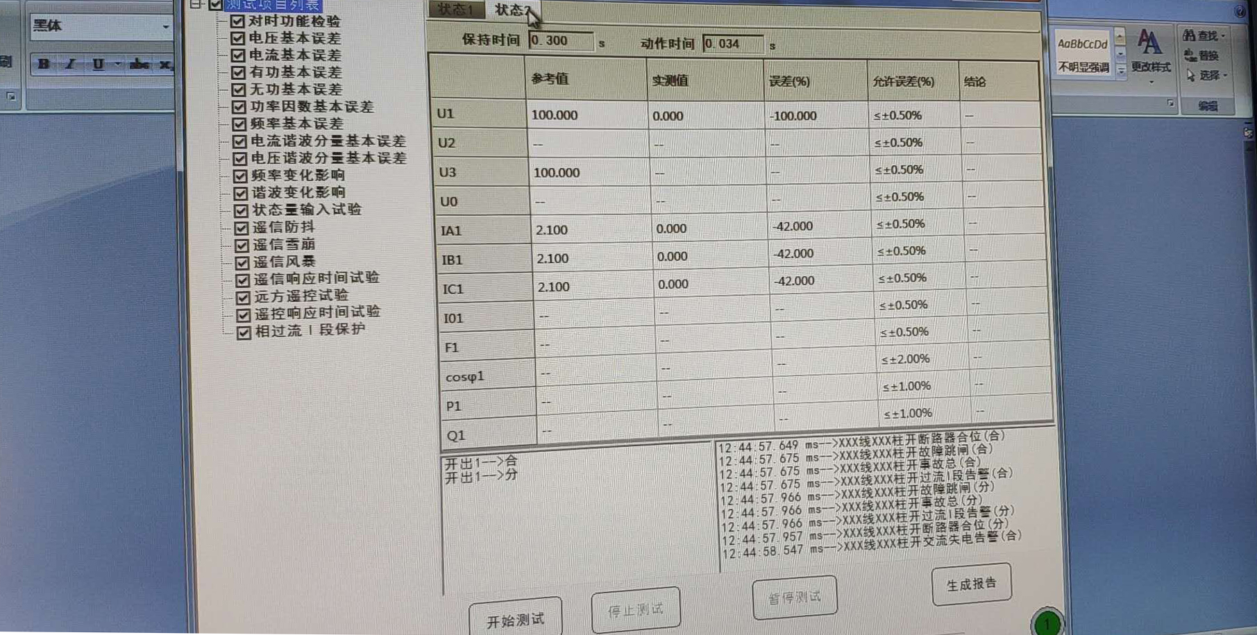 測(cè)試項(xiàng)目: XX電科院全檢項(xiàng)目