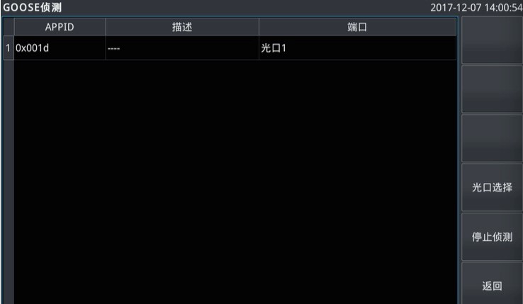 在GOOSE傳輸機(jī)制中,進(jìn)入“GSE接收”模塊,通過(guò)報(bào)文進(jìn)行“偵測(cè)”。 首先偵測(cè)各光口是否接入光纖,未接入光纖的光口將給出提示,接下來(lái)進(jìn)行偵測(cè),將偵測(cè)結(jié)果顯示在界面。 同時(shí),GOOSE服務(wù)器可重發(fā)相同數(shù)據(jù)獲得額外的可靠性。