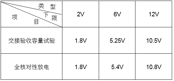單體電壓下限 : 蓄電池單體的電壓保護下限。 放電過程中如發(fā)現(xiàn)單體電壓跌落到該設置值以下時,試驗自動停止,避免單體電池過放。 根據(jù)DLT724-2000標準,交接驗收時和核對性放電時,二者的設置略有差別。 以閥控蓄電池為例,其差別如下表所示: