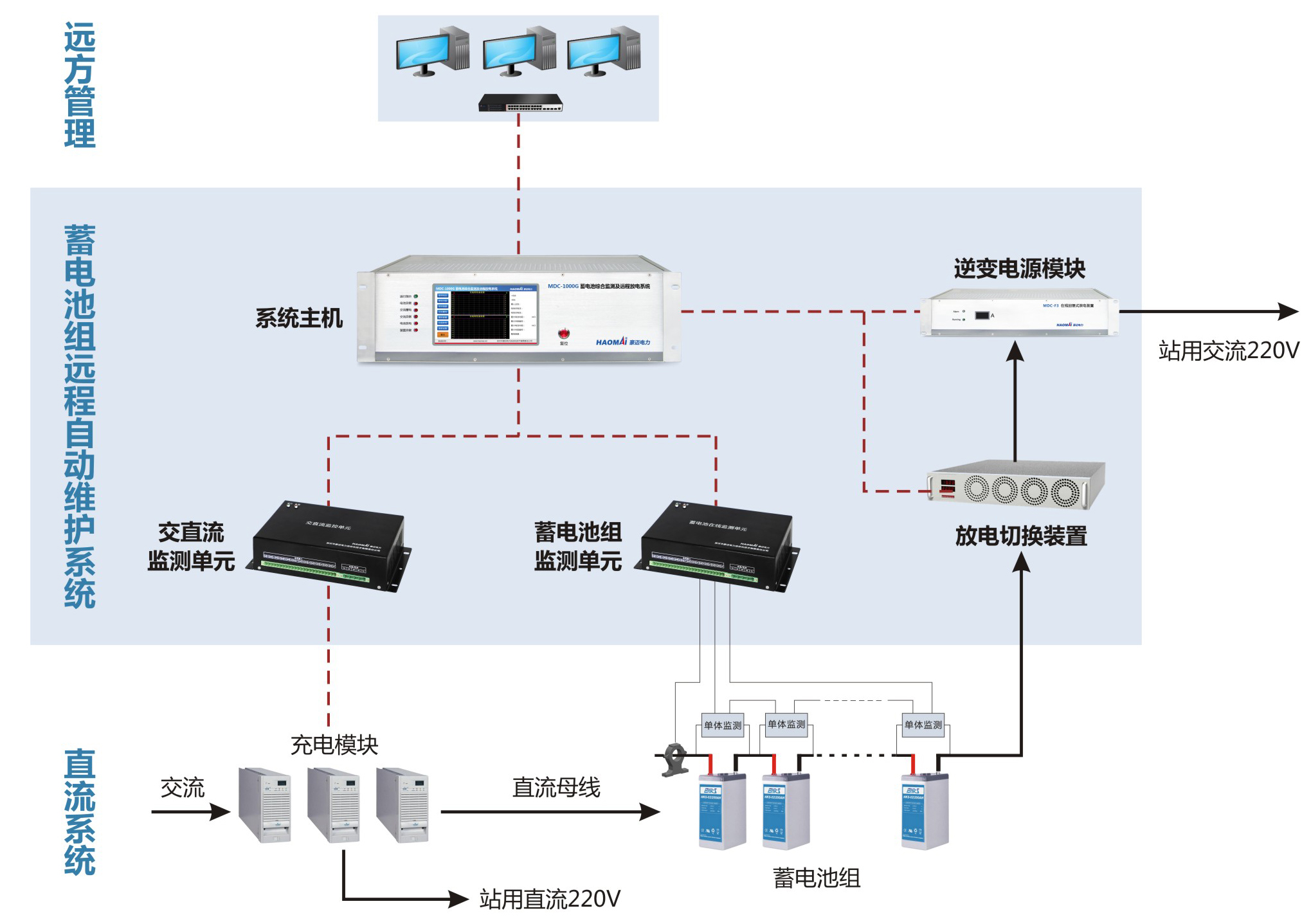 武漢豪邁電力 針對(duì)以上運(yùn)維難點(diǎn),廣泛收集站用直流系統(tǒng)運(yùn)行經(jīng)驗(yàn)和意見(jiàn),根據(jù)直流行業(yè)相關(guān)標(biāo)準(zhǔn),設(shè)計(jì)研發(fā)了MDC-2000 變電站蓄電池綜合監(jiān)測(cè)及遠(yuǎn)程自動(dòng)維護(hù)系統(tǒng),取代了傳統(tǒng)人工維護(hù)模式,實(shí)現(xiàn)蓄電池組的實(shí)時(shí)在線監(jiān)測(cè)與遠(yuǎn)程在線核容性放電維護(hù)。