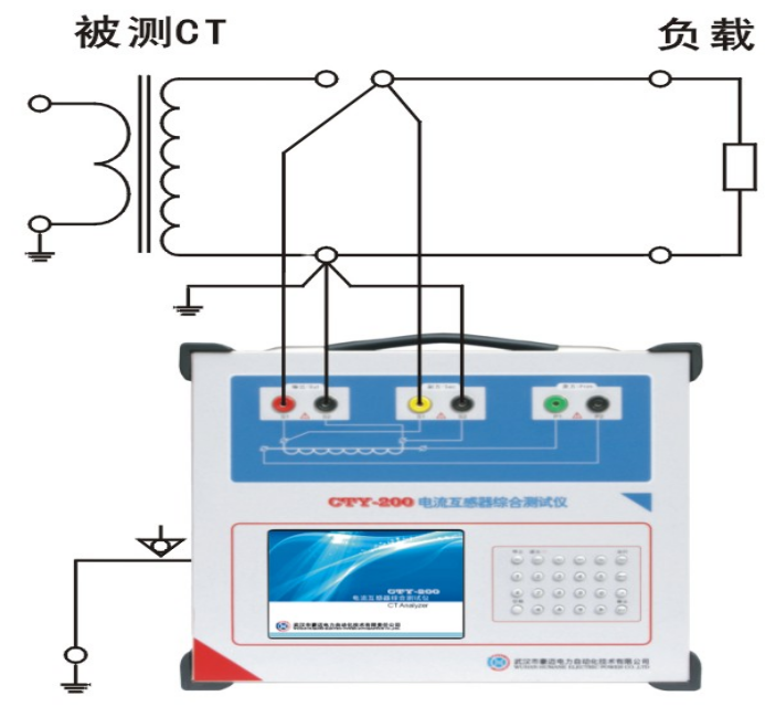 CTP系列互感器測試儀接地,S1-S2(源輸出)、M1-M2(輸出測量)接入二次端子箱保護繞組,P1-P2(感應電壓測量)接一次側測試相。