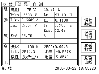 測試儀可根據給定負荷、勵磁曲線自動計算準確限值。