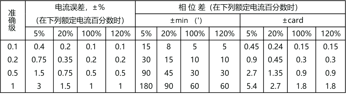 根據GB1208-2006及DL/T866-2004規(guī)定計量CT誤差限值不得超過下表: