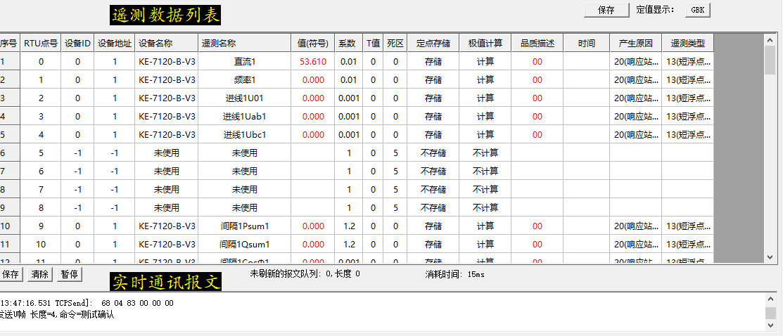 DTU通電完成后連接電腦,讀取DTU每個(gè)間隔的實(shí)時(shí)數(shù)據(jù),與后臺(tái)調(diào)度確認(rèn)遙測(cè)、遙信數(shù)據(jù)是否一致,能否正確進(jìn)行遙控操作。