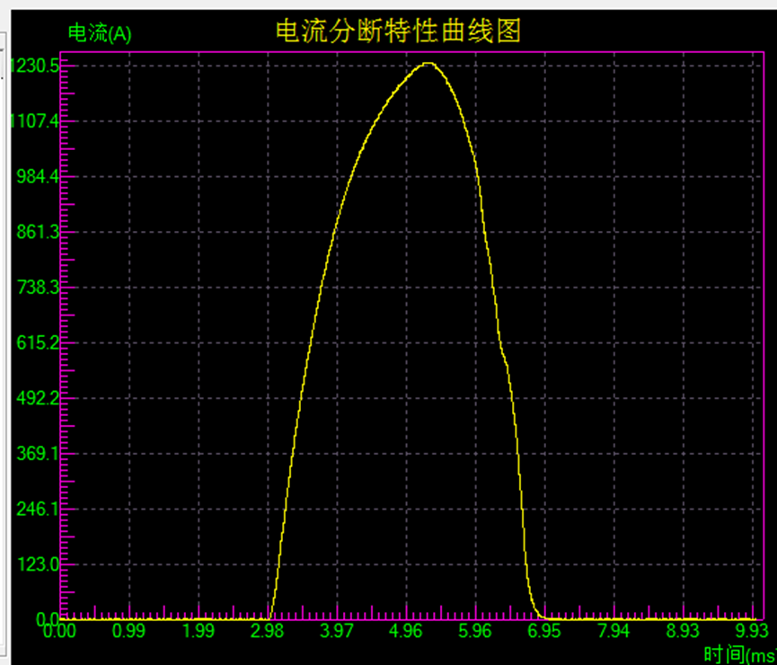 結(jié)合試驗(yàn)數(shù)據(jù)報(bào)告進(jìn)行動(dòng)作電流、弧前時(shí)間、滅弧時(shí)間以及電流分?jǐn)鄤?dòng)作曲線等結(jié)果分析。