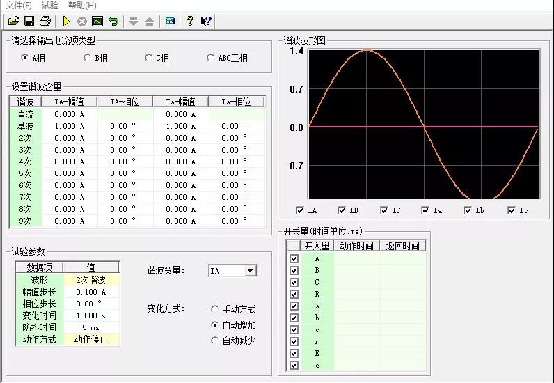 在主界面選擇“綜合功能”測試,點(diǎn)擊“故障回放與錄波分析”按鈕進(jìn)行錄波、波形回放、波形分析與波形編輯。
