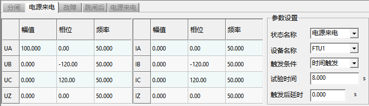 配電之星-P2200 配電自動(dòng)化終端測(cè)試儀A相電壓作為FTU的電源側(cè)電壓,C相電壓作為FTU的負(fù)荷側(cè)電壓。