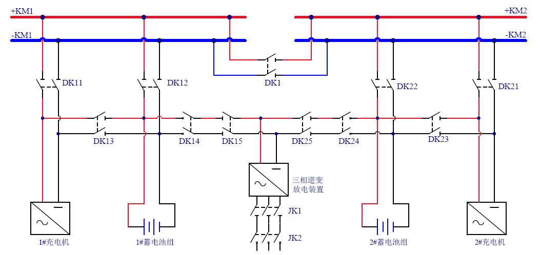 5)充電完成后,分DK13,待蓄電池靜置完成,合DK11和DK12。