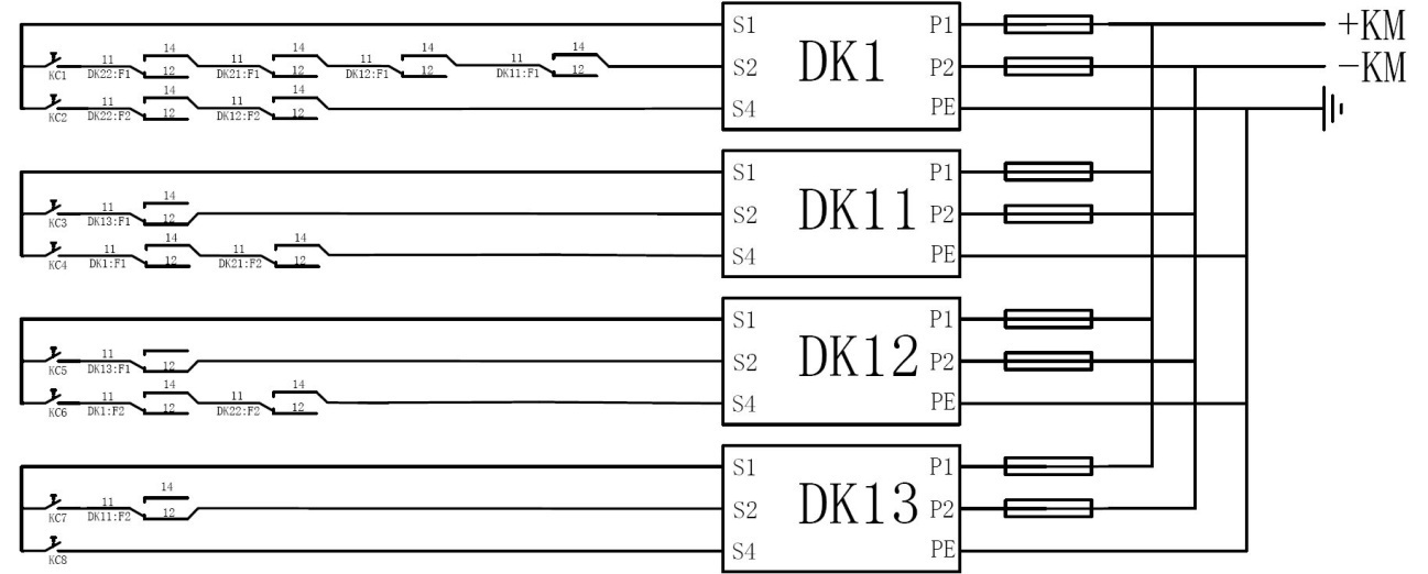 DK11、DK12、DK21、DK22四個常開輔助觸點串聯(lián) |