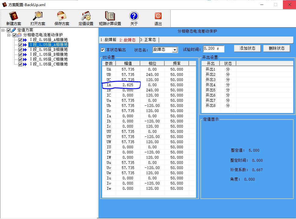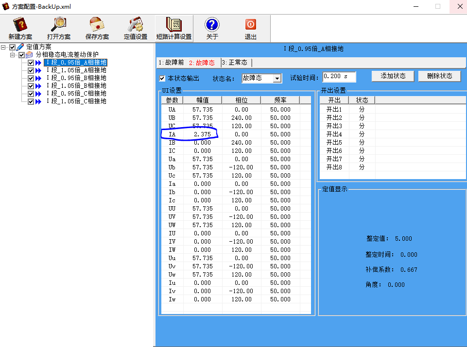 自動(dòng)生成故障前、故障態(tài)和正常態(tài)三種狀態(tài),針對(duì)0.95倍、1.05倍以及ABC三相不同的測(cè)試項(xiàng)目,生成不同的故障態(tài)結(jié)果,結(jié)果可進(jìn)行手動(dòng)修改。