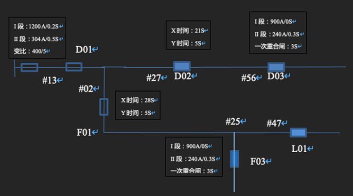 現(xiàn)場選取D01模擬變電站出線開關(guān),D02和F01三個點進(jìn)行測試。
