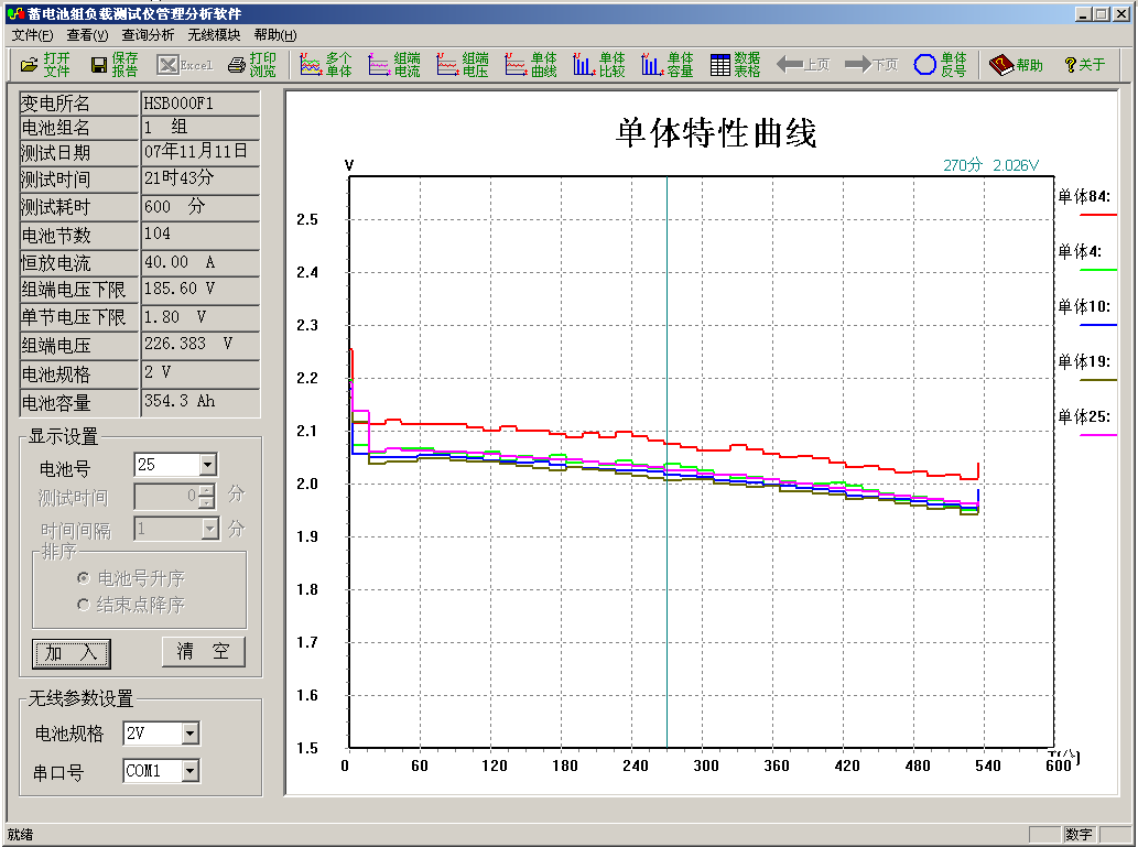 蓄電池的充放電試驗可對電池內(nèi)部進行活化,充放電后蓄電池組的電壓更加均衡,搭配蓄電池單體無線檢測模塊可在放電和充電過程中用無線通信方式監(jiān)測每節(jié)電池的電壓和放電曲線,并可在任意某節(jié)電池低于下限時自動報警并暫停放電以及繼續(xù)放電。