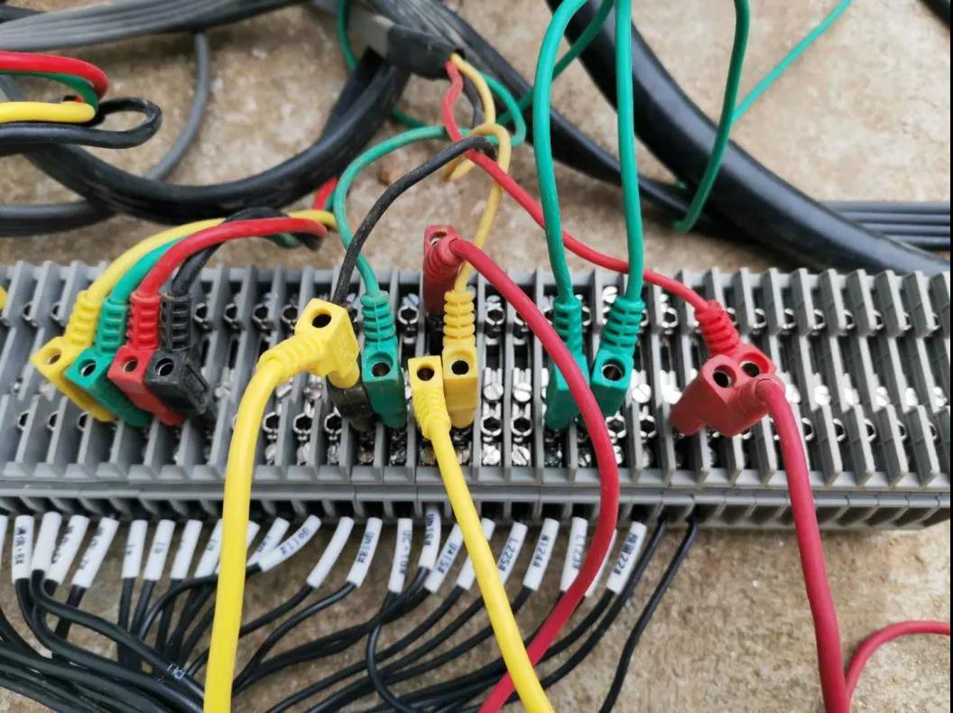 5)FTU負(fù)荷側(cè)電壓接線 : 配電之星-P2200 UA接線插頭插入工裝端子排UA端子口, UB接線插頭插入工裝端子排UC端子口,UN接線插頭插入工裝端子排UN端子口, UC接線插頭插入工裝端子排UC+端子口,用一根短接線從工裝端子排UC-端子口插入工裝端子排UB端子口,再取一根短接線從端子排UB端子口插入端子排UN端子口。
