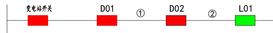 1)模擬故障點(diǎn)①故障 : D01檢測到故障后D01跳閘,D02失壓分閘,D01重合閘,合于故障后D01加速跳閘并正向閉鎖,D02檢測到殘壓反向閉鎖,故障隔離在D01和D02之間。 30秒后聯(lián)絡(luò)開關(guān)L01單側(cè)有壓合閘,完成自動(dòng)轉(zhuǎn)供。