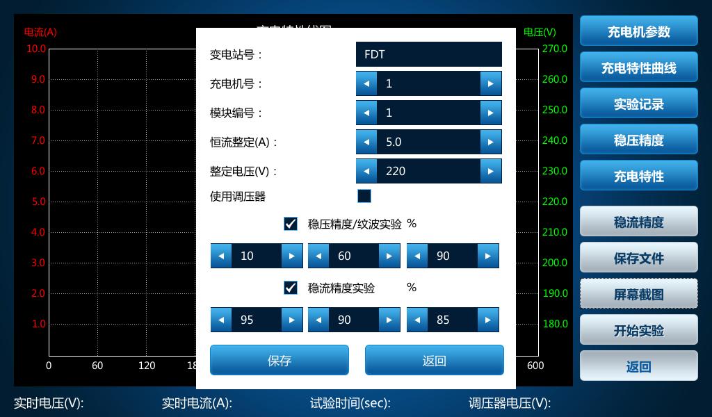 △ 充電機特性試驗參數(shù)設(shè)置