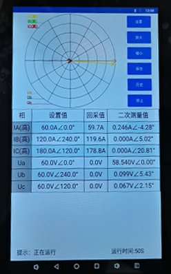 通過CT、PT注入一次電流電壓值在保護(hù)裝置上查看幅值與相位從而檢查所有二次回路與極性。