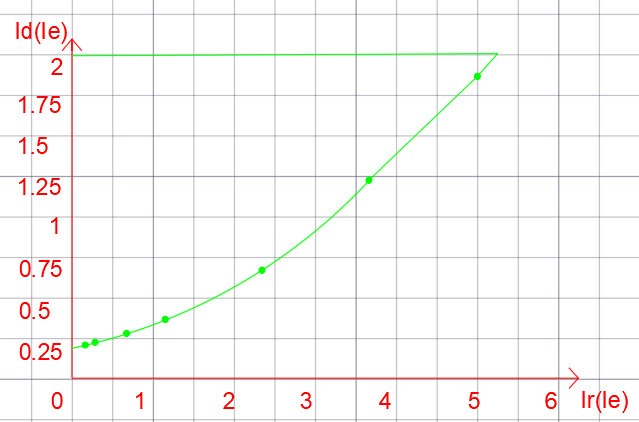 根據(jù)以上試驗(yàn)數(shù)據(jù)的制動(dòng)電流Ir和差動(dòng)電流Id,即可描繪出發(fā)電機(jī)縱差比率邊界曲線圖。