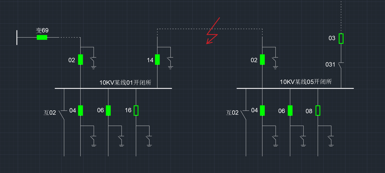5)在 01 開閉所觀察到 16 開關(guān)柜跳閘后,可在 05 開閉所觀察到 08 開關(guān)柜跳閘, 03 開關(guān)柜合 上,做好主站策略信息記錄與資料整理。