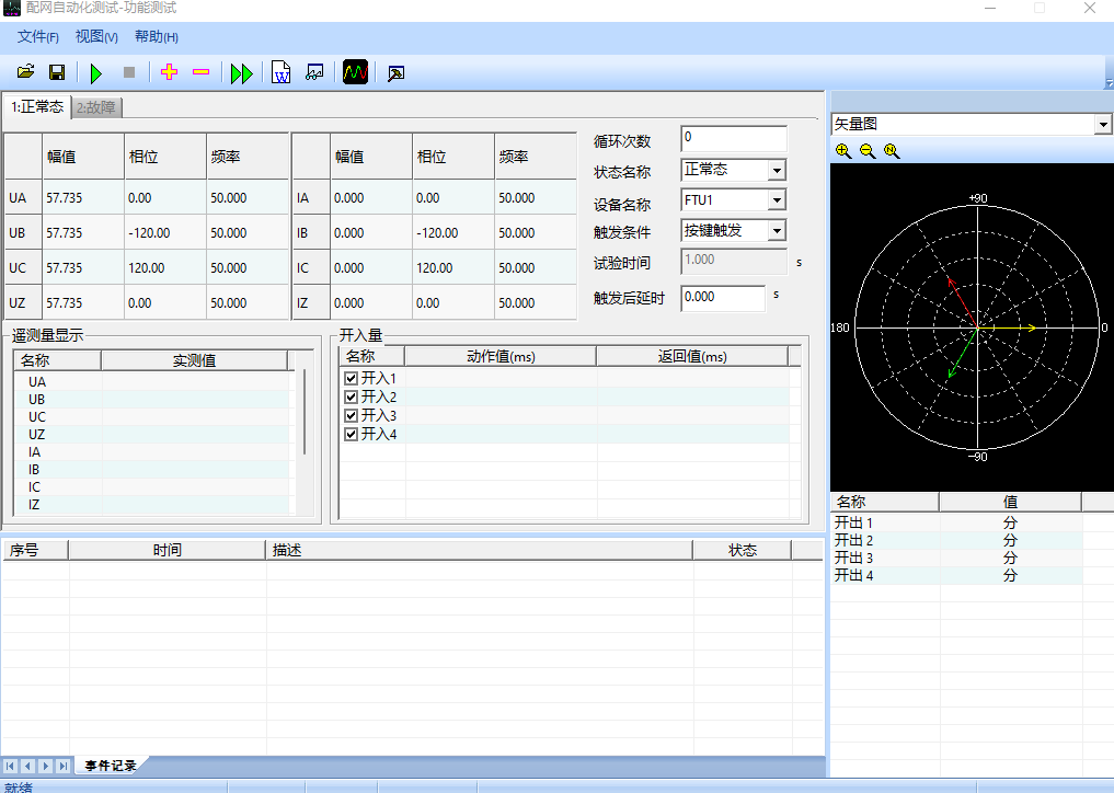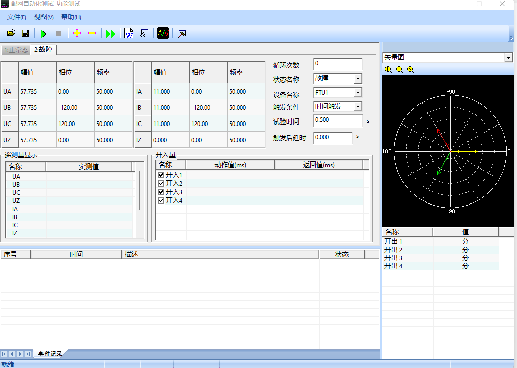 4)配電之星-P2200 進(jìn)入功能試驗(yàn)界面,設(shè)置正常態(tài)及故障態(tài),然后運(yùn)行。