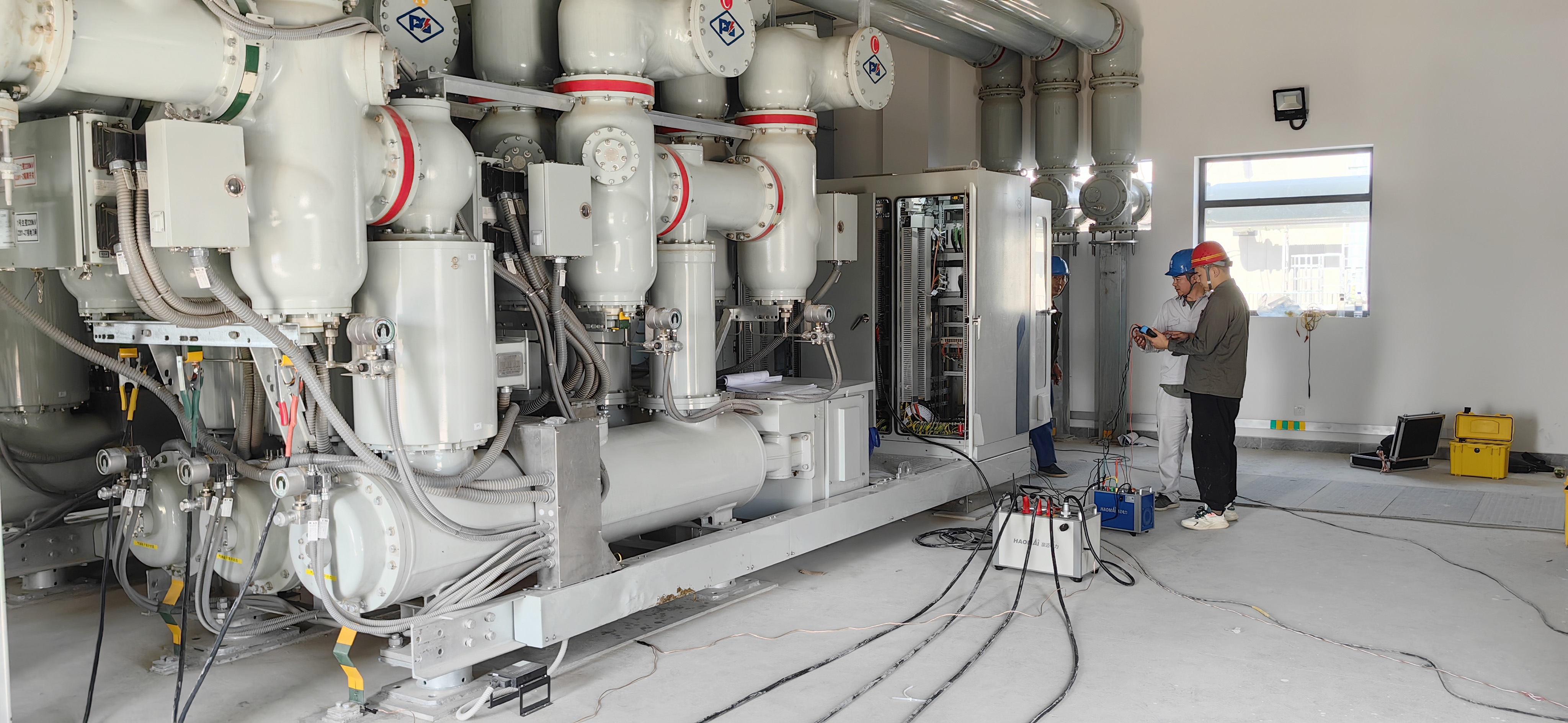 近期,國網(wǎng)某電力公司即將投運的220kV變電站使用HTA-3300 三相數(shù)字式智能大電流源搭配HTV-6000 三相數(shù)字式智能高電壓源,完成站內(nèi)GIS設(shè)備的相量檢查與極性校驗工作。