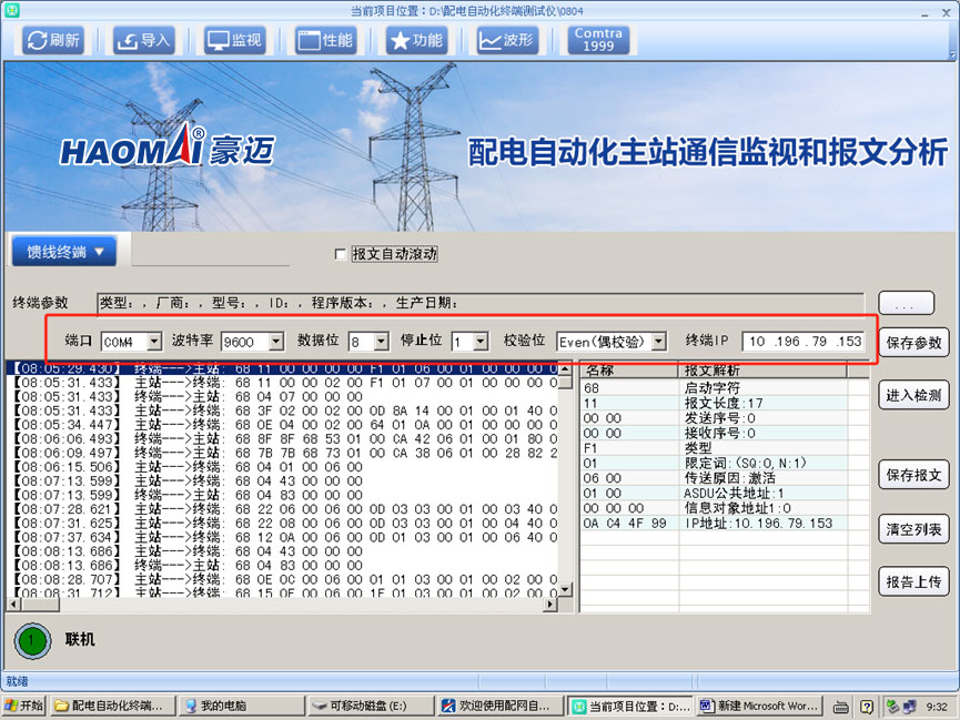 4)確認(rèn)已成功連接主站。 在下側(cè)對(duì)話(huà)框出現(xiàn)鏈路通訊報(bào)文正常后,并確認(rèn)報(bào)文無(wú)異常。