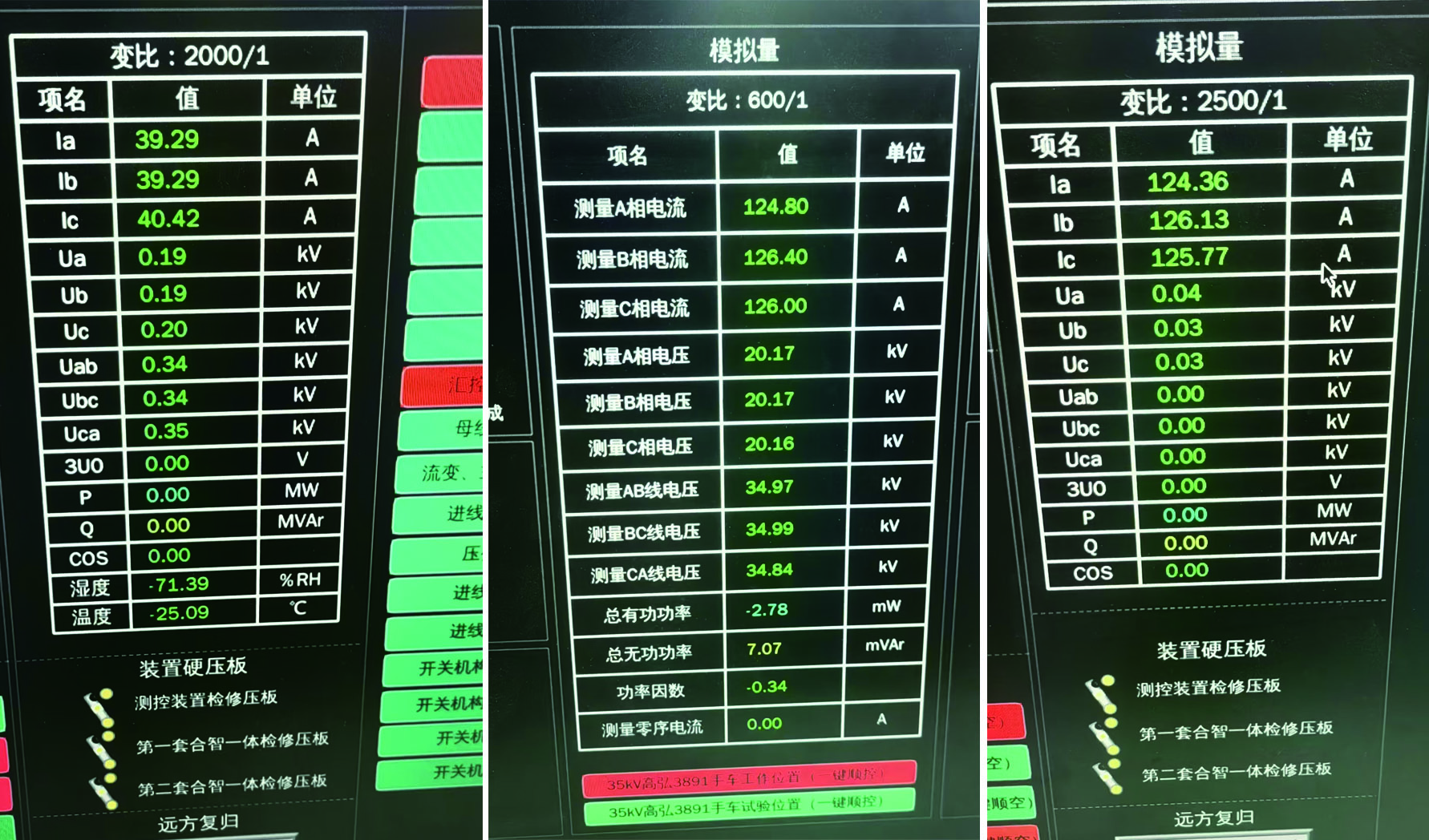測量1號主變、35kV母分、35kV 高寧3894間隔相關保護、測控、計量等二次回路電流和角度,判斷 CT變比和極性是否符合要求。 檢查相關裝置的采樣數(shù)值與相角,是否與實際測試情況相符。 測控裝置及后臺的功率數(shù)值及功率方向應與實際施加的量相符,并記錄數(shù)據(jù)。 每次完成后先短路下一間隔,再斷開出線刀閘及開關。