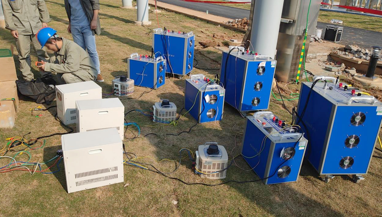 變電站新建與改造時,CT、PT安裝后需進行極性測試以保證送電后正常運行。 對于阻抗較大的變壓器(如1000kV超高壓變壓器),武漢豪邁提出電容補償新方法,研發(fā)生產(chǎn)了HTB-8000 大型變壓器一次通流試驗裝置,在對試驗電源要求不高的條件下,大幅提高輸出的試驗電流和輸出功率,實現(xiàn)對大型變壓器進行一次側(cè)大電流通流試驗,可穿過變壓器對兩側(cè)進行通流試驗(對側(cè)短接),對變壓器兩側(cè)一次回路進行通流通壓試驗。