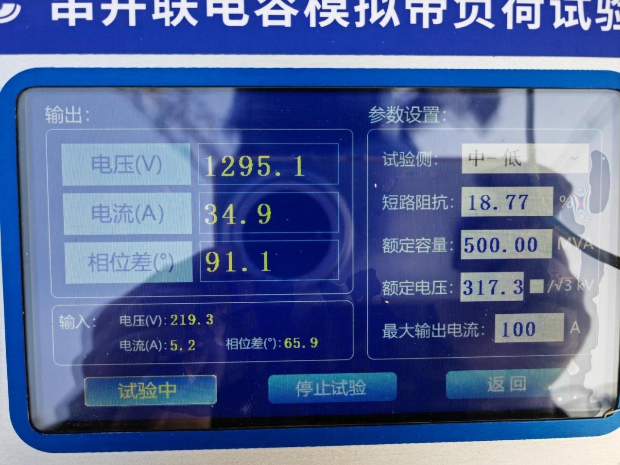 1)負荷模擬式繼電保護向量檢查解決方案: 由于大型電力變壓器等效短路阻抗過大,采用電容補償,回路中串聯(lián)電容以補償部分感抗,降低試驗回路阻抗,提升試驗電流的同時不改變試驗回路的感性效果,即補償時只是欠補償,然后再在試驗電源兩端并聯(lián)補償電容,此時基本達到全補償。 對試驗電源來說,整個回路接近并聯(lián)諧振狀態(tài)。 此補償通流方法在提高試驗電流時,降低了對系統(tǒng)電源的要求。