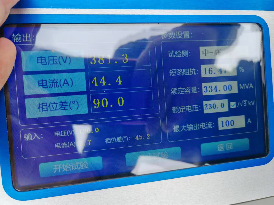 變電站主變保護(hù)裝置安裝調(diào)試完成,試驗前所有準(zhǔn)備工作經(jīng)現(xiàn)場確認(rèn),試驗現(xiàn)場負(fù)責(zé)人傳出指令: 開始主變通流試驗,根據(jù)試驗方案選取注流點,將電流升到45A通變壓器中壓側(cè)到高壓側(cè)相關(guān)間隔,安全和防誤措施、技術(shù)和試驗步驟實行試驗單位和檢修負(fù)責(zé)人雙確認(rèn)。 在總指揮的統(tǒng)籌指導(dǎo)下,各方通力合作,設(shè)備滿足方案要求,中壓側(cè)對高壓側(cè)試驗時,通變壓器輸出45A電流、380V電壓,確認(rèn)變壓器差流與角度正確,所有間隔試驗半小時內(nèi)全部完成。