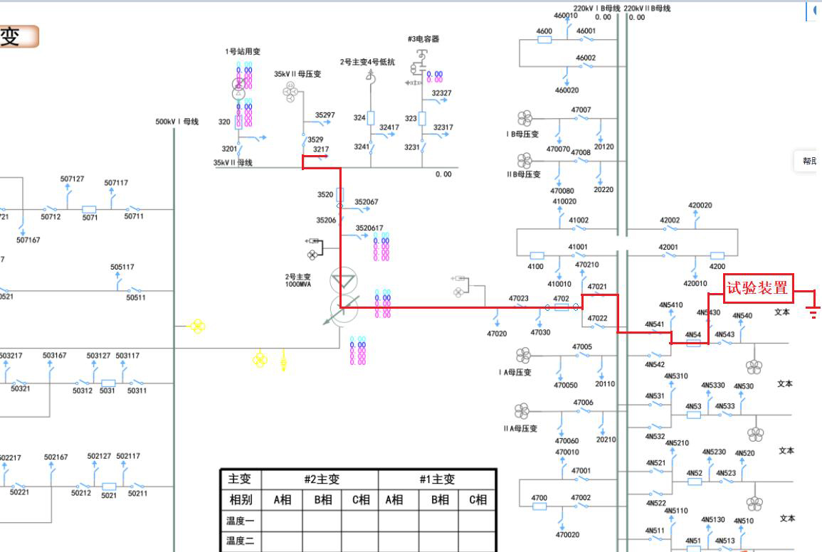 某500kV變電站變壓器采用Y/△-11接線方式,下面以中壓側(cè)對低壓側(cè)通流介紹試驗(yàn)方法。