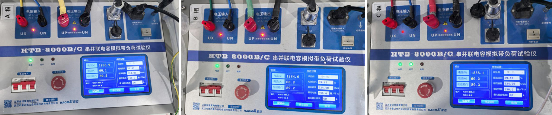 本次使用HTB-8000 大型變壓器一次通流試驗(yàn)裝置對500kV主變差動保護(hù)進(jìn)行向量檢查,從一次側(cè)升壓,利用變壓器本身短路阻抗實(shí)現(xiàn)穿越通流,一次性實(shí)現(xiàn)對主變高(中)壓側(cè)外附CT、套管CT、公共繞組CT以及低壓側(cè)外附CT、套管CT通流,驗(yàn)證主變縱差保護(hù)、分相差動保護(hù)、分側(cè)差動保護(hù)以及低壓側(cè)小區(qū)差動保護(hù)向量正確性,通過差流大小即可判斷主變保護(hù)向量極性是否正確,大大提高送電效率。