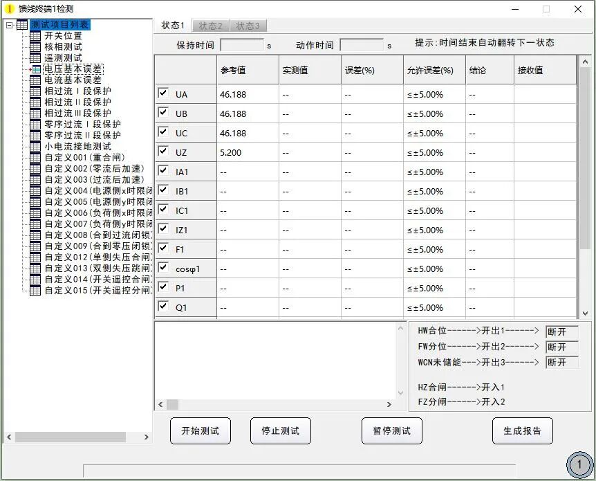 以往配電終端聯(lián)調時對點調試需根據(jù)點表描述,手動進行多狀態(tài)組合控制輸出,并逐項上送點位數(shù)據(jù),武漢豪邁配網(wǎng)自動化測試系統(tǒng)可自動完成終端對點測試,支持自定義測試項目,新增測試模板,實現(xiàn)狀態(tài)序列靈活配置,一鍵完成自動對點測試。